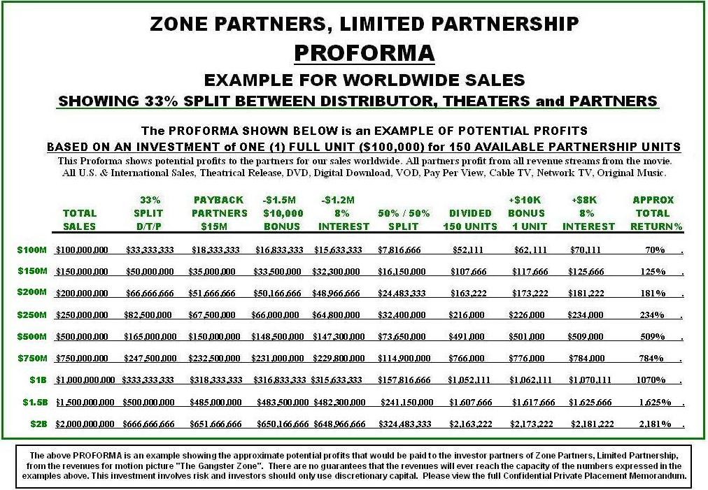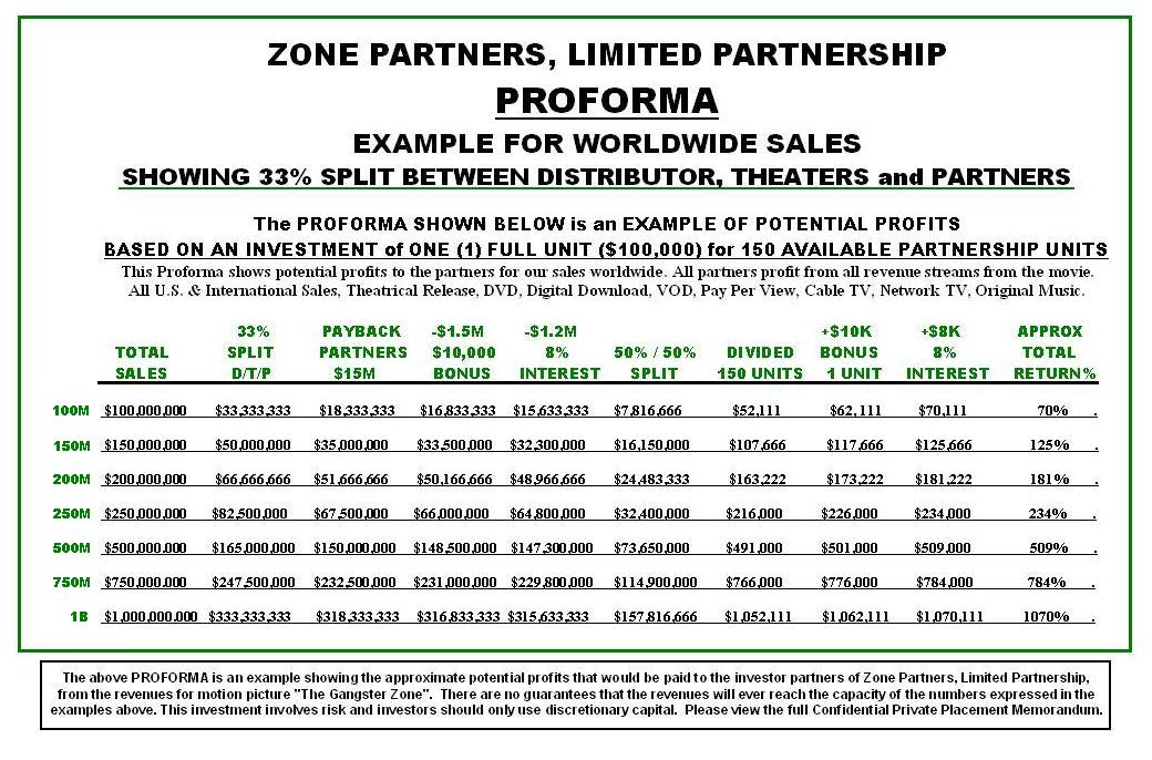 All partners profit from all revenue streams from the movie from the U.S. and Internationally for,