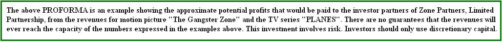 This is not an offer to sell nor a solicitation to buy any security. Any offer or solicitation to purchase a security may only be made by the complete Confidential Private Placement Memorandum for the investment in the proposed motion picture. Please review the complete Confidential Private Placement Memorandum, and all of the risk factors in the Memorandum, before making an investment decision.